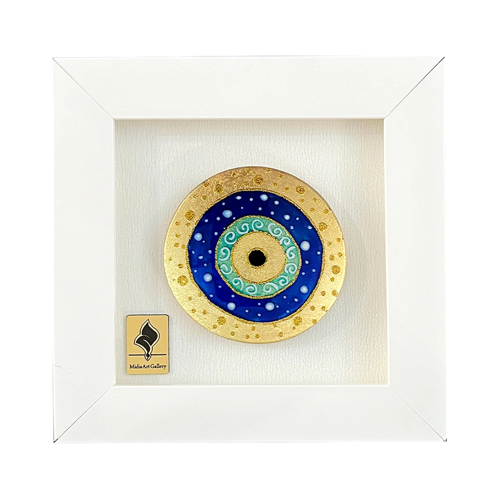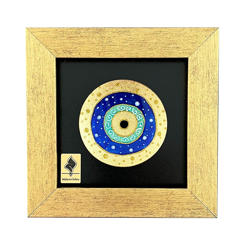 طرح دایرهای چشم نظر نمادی از محافظت در برابر انرژیهای منفی است و در فرهنگ ایرانی جایگاه ویژهای دارد. این اثر علاوه بر جنبه تزئینی، بار معنایی عمیقی نیز در خود دارد و میتواند انتخابی منحصربهفرد برای هدیه دادن به عزیزانتان باشد.
