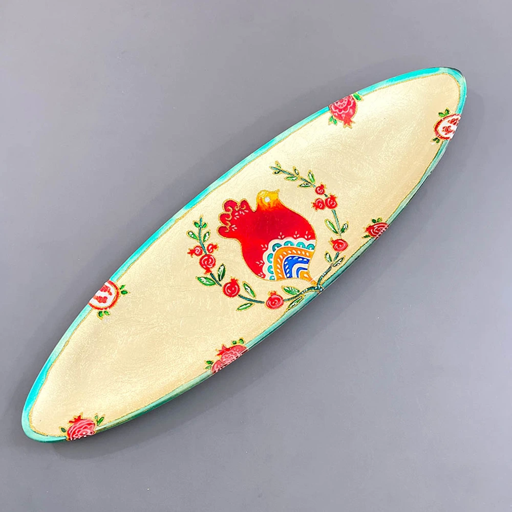 ترکیب انار به عنوان نماد یلدا و مرغ آمین در مرکز ظرف، حس اصالت و آرامش را تداعی میکند — انتخابی خاص برای شب یلدا، هدیهای ماندگار یا چیدمان هنری منزل.